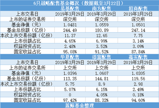千亿战略配售基金即将迎来上市,3月26日,6只战略配售基金集体发布上市交易公告书,宣布上市日期定于2019年3月29日。